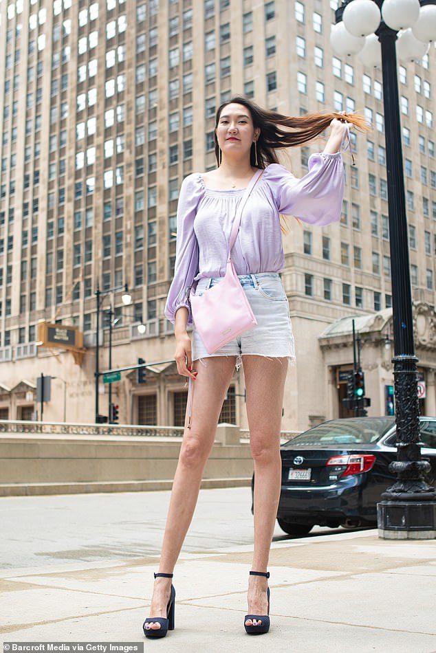 قالت امرأة، تمتلك ساقين مدهشتين طولهما 134 سم تقريباً، إنها تحب التباهي بهما في سراويل قصيرة وأحذية ذات كعوب عالية برغم طولها الذي يبلغ 210 سم.