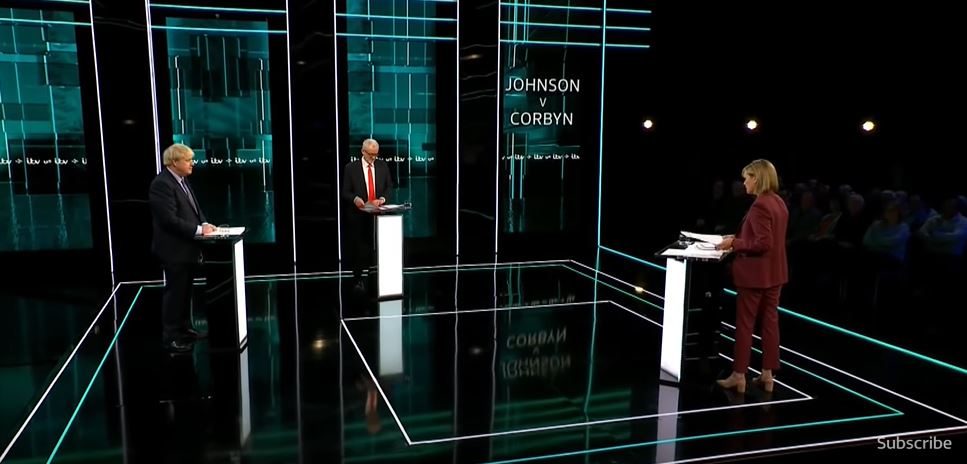 مناظرة: كشفت مصادر أن نحو 6.7 مليون شخصٍ شاهد المناظرة الطاحنة بين بوريس جونسون زعيم حزب المحافظين، وجيريمي كوربين زعيم حزب العمال، التي نظمتها قناة ITV البريطانية. وكانت هذه هي المرة الأولى التي يتواجه فيها مرشحان لرئاسة الوزراء على التلفزيون خلال الحملة الانتخابية.