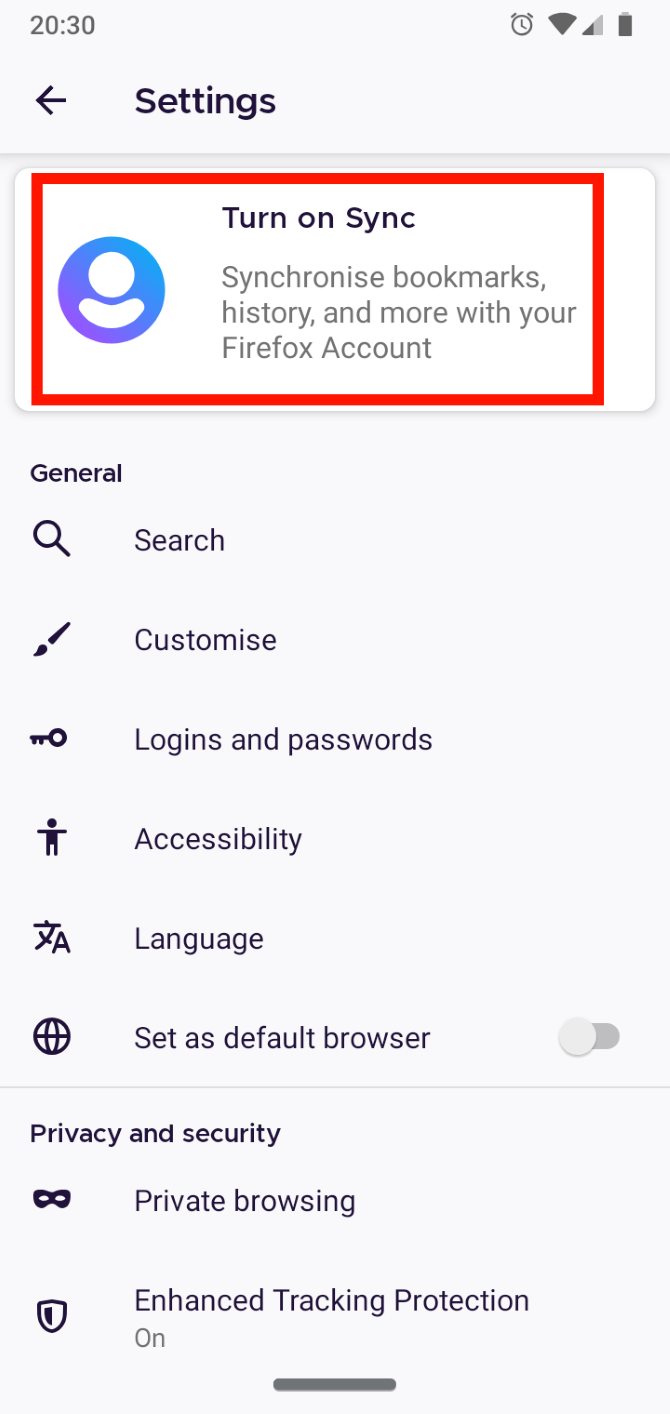 الآن اضغط على تفعيل المزامنة turn on Sync