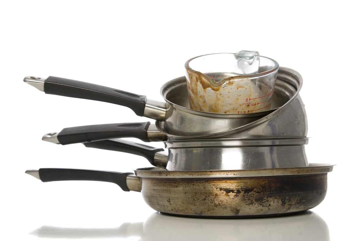 عدم إزالة الطعام العالق من المقالي بشكل صحيح