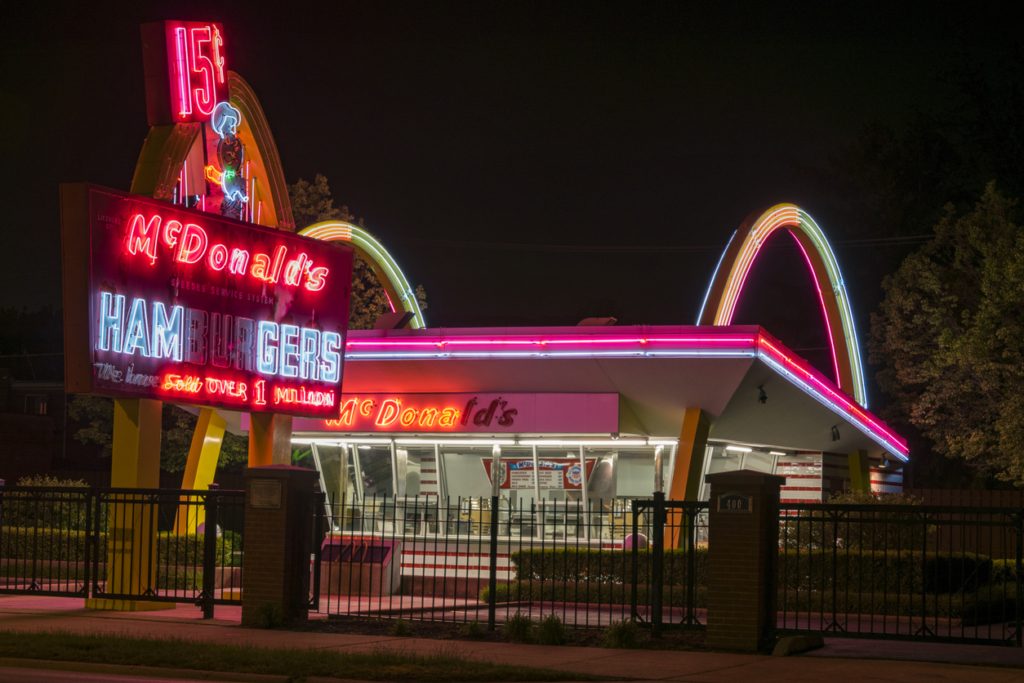 بعض هذه اللافتات القديمة يحمل سعر همبرغر ماكدونالدز والذي كان 15 سنتاً فقط في ذلك الوقت.