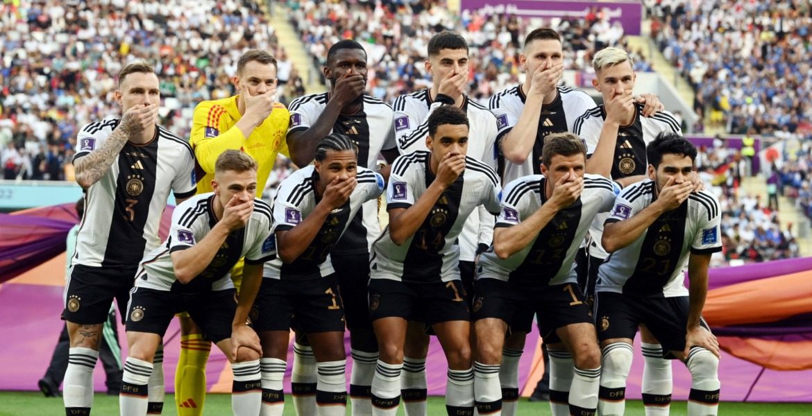 وأثار المنتخب الألماني جدلاً واسعاً حين وضع لاعبوه أيديهم على أفواههم في الصورة الجماعية، قبل أول مباراة لهم في كأس العالم والتي خسروها أمام اليابان، اعتراضاً على منع الاتحاد الدولي "فيفا" قادة المنتخبات من ارتداء "الشارة الملونة" الداعمة للمثلية.